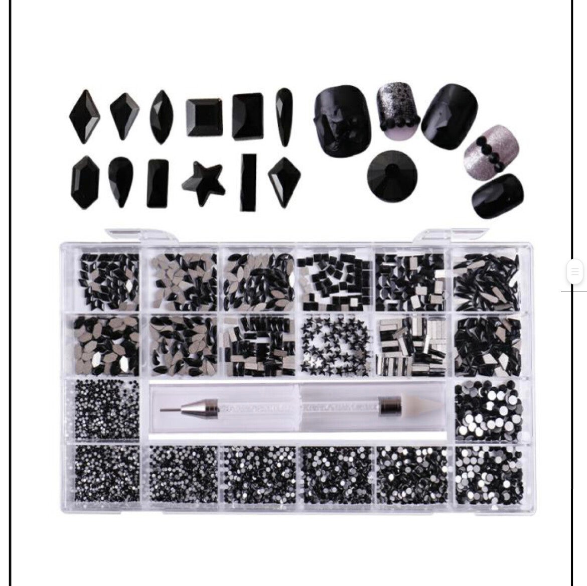 Ideale overzichtelijk rhinestones box voor professionele nagelstyling werk.