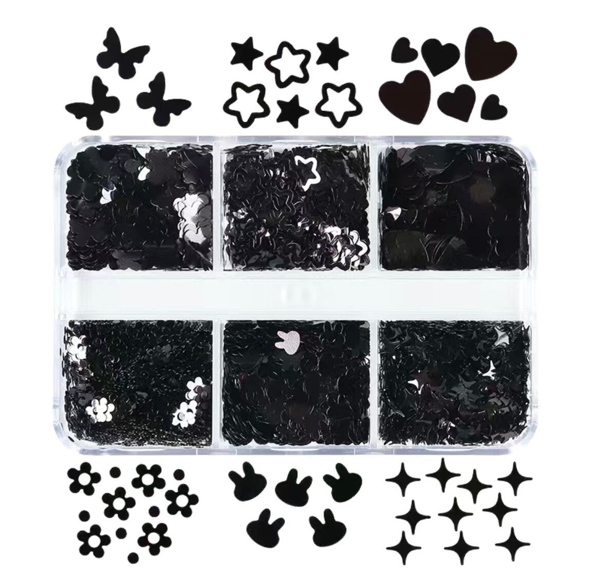 Nailart box mix 6 vakjes 002 zwart