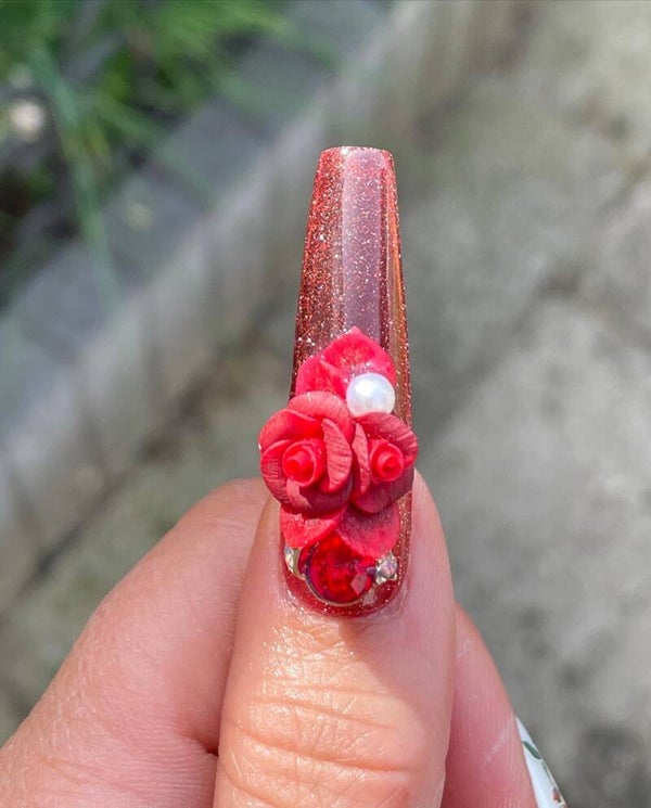 Let op: grote bloemen, alleen geschikt voor lange nagels