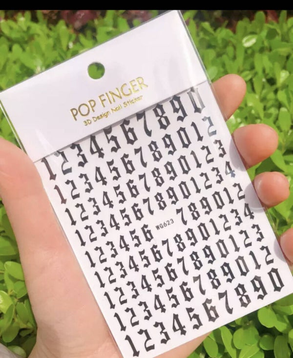 Nailart stickers oud engels nummers groot zwart